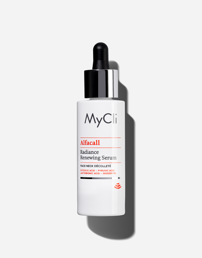 MyCli Alfacall ist eine verstärkte Fluid-Behandlung mit hohem Gehalt an Alpha-Hydroxysäuren und progressiver Erneuerungswirkung. Die Formel beschleunigt den Hauterneuerungsprozess und regt die Wanderung gesunder und junger Zellen an die Oberfläche an, wodurch die Haut strahlend, geglättet und für nachfolgende Behandlungen aufnahmefähig wird. Integrierte mikromolekulare Technologie auf Basis von: Glycolsäure, Lactobionsäure und Brenztraubensäure, Watercapt Glucoside-Komplex und Isodeep PE.