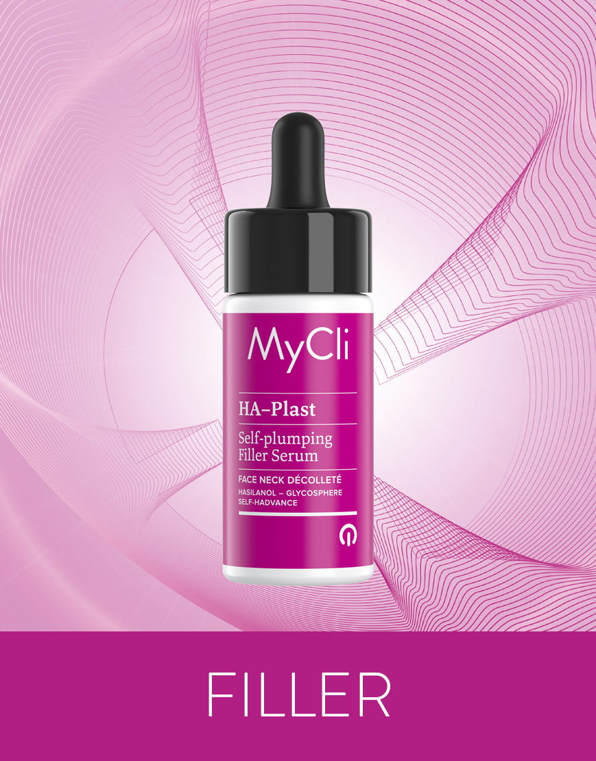 MyCli HA-Plast Siero è un trattamento fluido potenziato ad alto contenuto di precursori dell’acido ialuronico ad effetto dermo volumizzante. La sua formula rilancia la produzione di acido ialuronico endogeno, donando plasticità e volume alla pelle del viso. Inoltre, potenzia l’attività dei fibroblasti, migliora l’organizzazione delle sostanze presenti nella matrice extra-cellulare e promuove l’idratazione cutanea per una pelle elastica, morbida e visibilmente più compatta e riempita. Tecnologia micromolecolare a base di: silanolo specializzato, glicogeno, tripeptide che stimola la produzione endogena di acido ialuronico.
