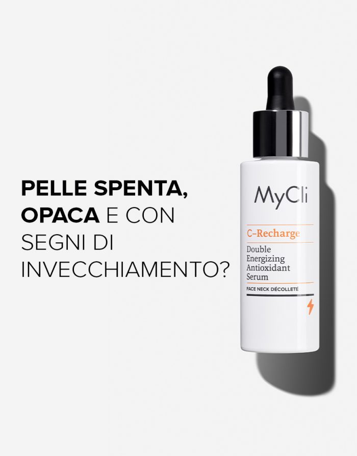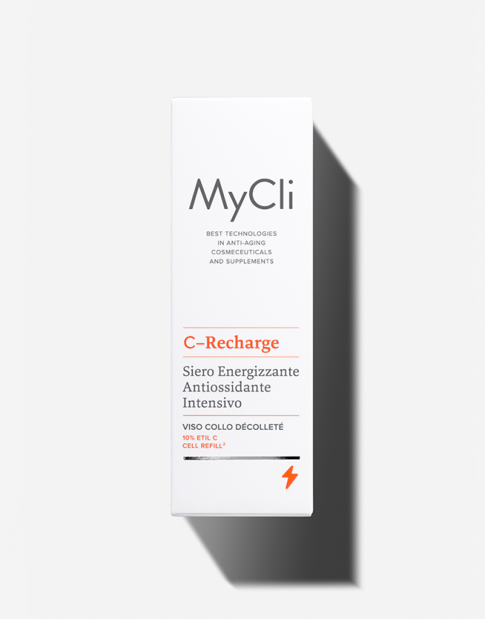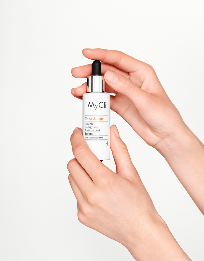MyCli C-Recharge potenziert die antioxidative Wirkung des Vitamins C mit einem exklusiven Komplex aus Carnitin und Ribose – Cell Refill² –, der das Mitochondrium dazu anregt, die Zellen mit neuer Energie zu versorgen und Schäden durch freie Radikale entgegenzuwirken. Die Doppel-Wirkung versorgt die Haut mit zusätzlichem Sauerstoff und macht sie vitaler und widerstandsfähiger. Die hohe Vitamin-C-Konzentration fördert eine intensive Wirkung und die ultraleichte Serum-Textur ermöglicht ein effizientes Eindringen der Wirkstoffe für schnelle und dauerhafte Ergebnisse.