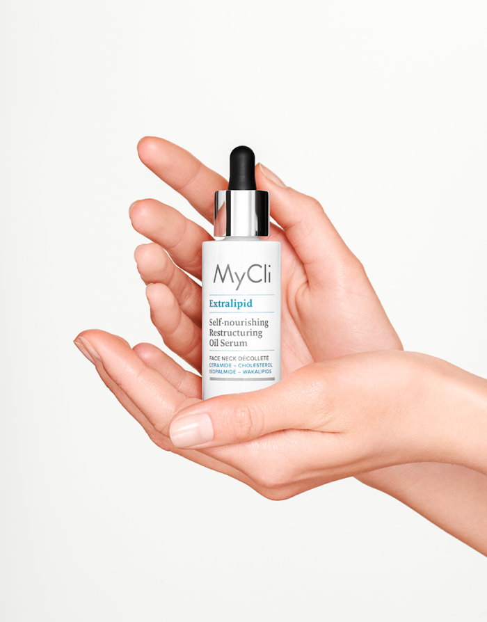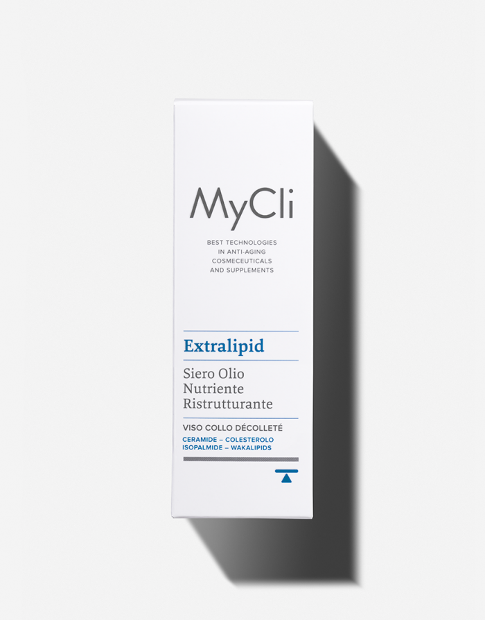 MyCli Extralipid Serum ist eine verstärkte Öl-Behandlung mit hohem Gehalt an Vorläufern der wichtigsten Hautlipide und restrukturierender und aufbauender Wirkung. Die Formel regt die endogene Produktion von Hautlipiden an und versorgt trockene, sehr trockene und lipidarme Haut mit Nährstoffen, Geschmeidigkeit und Wohlbefinden. Darüber hinaus repariert und restrukturiert sie die Hautbarriere, macht die Haut kompakter und elastischer und wirkt Missempfindungen der Haut und lokalen Rötungen, den typischen Anzeichen sehr trockener Haut, entgegen. Integrierte mikromolekulare Technologie auf Basis von Ceramid, Cholesterin, Isopalmid und Wakalipids.