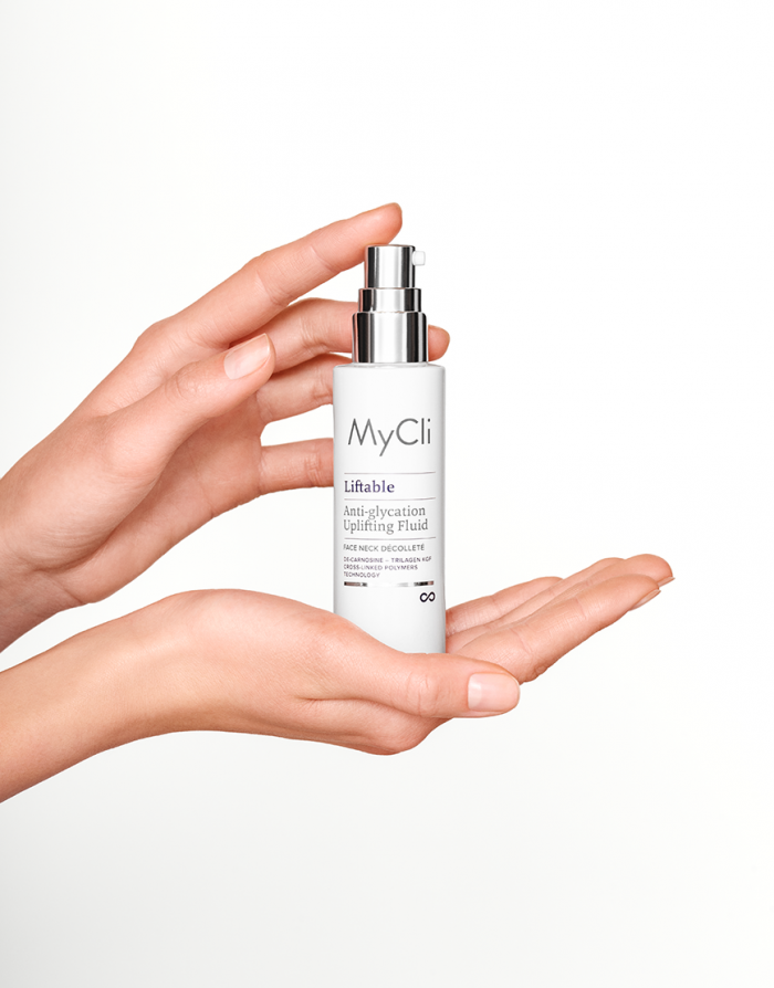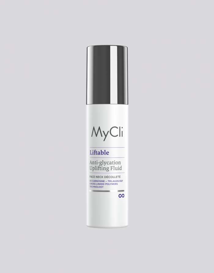 MyCli Liftable Fluid ist eine ultrakorrektiv wirkende Behandlung mit aufbauendem Anti-Glykationsschutz. Die Formel mit doppelter Wirkung fördert und schützt die natürliche Organisation von Kollagen und gibt der Haut Halt, Struktur und Fülle. Die Bündelung von Molekülen regt die Fibroplasten dazu an, das körpereigene Kollagen gegen eine Matrix-Protease (MMP) und die Proteinfasern gegen eine Versteifung durch ihre Glykation zu schützen. Für eine straffe, kompakte und elastische Haut. Integrierte mikromolekulare Technologie, bestehend aus einer Peptidbindung (KGF Trilagen), De-Carnosin und einem funktionellen Trägerstoff, der ein Netzwerk für die kontrollierte Freisetzung von Wirkstoffen bildet.