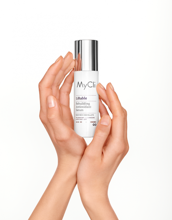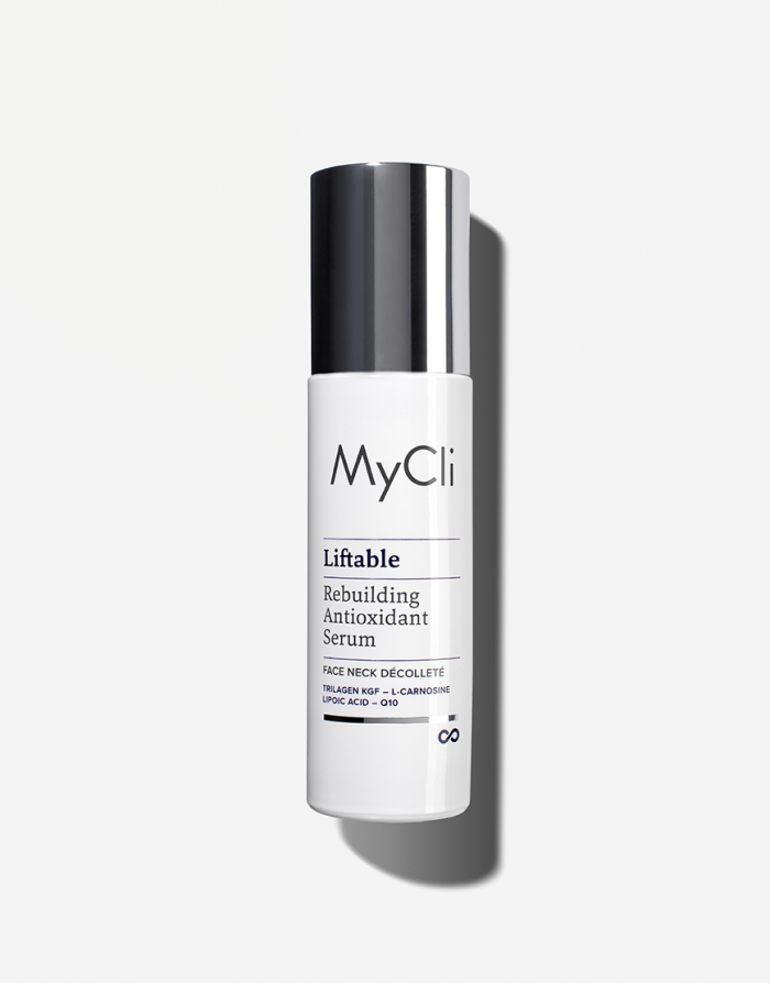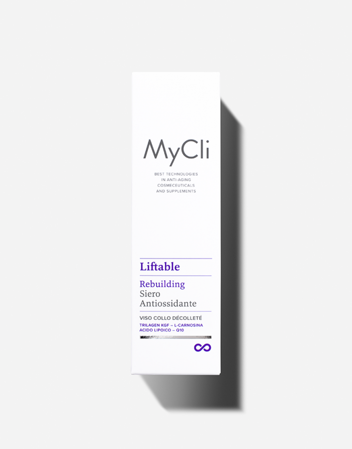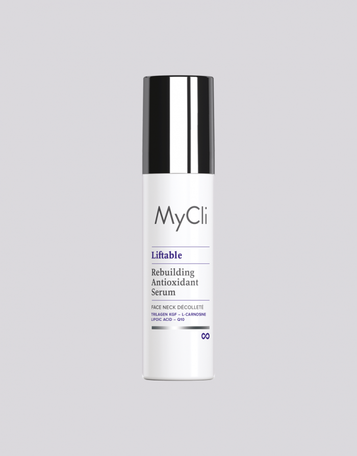 MyCli Liftable Rebuilding Antioxidatives Serum ist ein Serum mit hautaufbauender Wirkung. Seine Formel begünstigt die natürliche endogene Kollagenproduktion und verleiht der Gesichtshaut Straffheit, Kompaktheit und Vitalität. Außerdem unterstützt es die Hautbarriere und wirkt oxidativem Stress entgegen für einen progressiven restrukturierenden Lifting-Effekt. Integrierte mikromolekulare Technologie auf Basis von: Peptidbindung KGF Trilagen, Liponsäure, Carnosin, Koenzym Q10, Phytosphingosin, Ceramiden und Cholesterin.