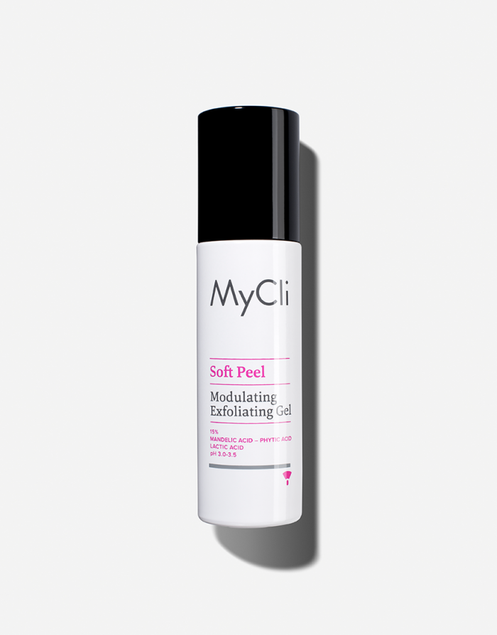 MyCli Soft Peel enthält eine 15%ige Bündelung von Mandel-, Milch- und Phytinsäure mit gepuffertem pH-Wert auf einem für alle Hauttypen geeigneten Trägerstoff. Die Formel regt den Hauterneuerungsprozess an, exfoliert die Haut schrittweise und entfernt verhornte Zellen. Für eine restrukturierende, Leuchtkraft spendende und glättende Wirkung.