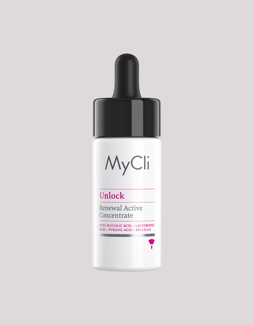 Unlock ist eine Lösung auf Basis von Glykolsäure, laktobionischer Säure und zu 37,5 % konzentrierter Brenztraubensäure. Diese Säuren haben erneuernde Wirkung und machen die Epidermis durchlässiger. Ihre Rezeptur ist dafür optimiert, die Erneuerung der Hornschicht (Stratum corneum) anzuregen und die Neubildung junger und vitaler Zellen an der Hautoberfläche zu beschleunigen. Hierbei bewirkt sie, dass die Haut aufnahmefähiger wird, dabei jedoch weder gereizt noch empfindlich gemacht wird. Zudem verbessert sie in quantitativer Hinsicht den Erfolg der durchgeführten Nachbehandlungen.