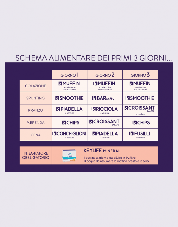 3 GIORNI DI PASTI COMPLETI – 27 COLAZIONI – 1 INTEGRATORE COLLAGENAG